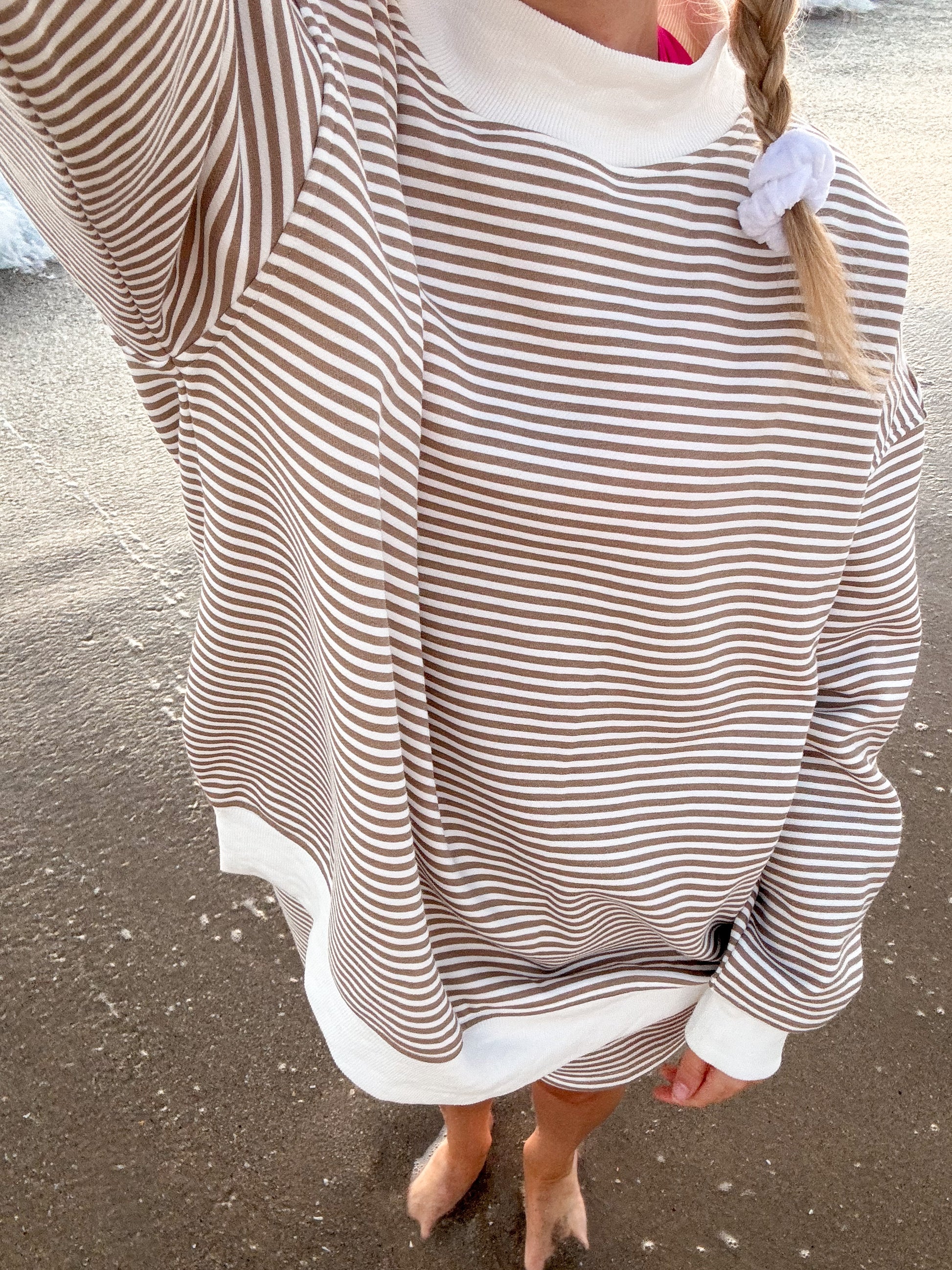 Brown and White Big Striped Mockneck Sweatshirt