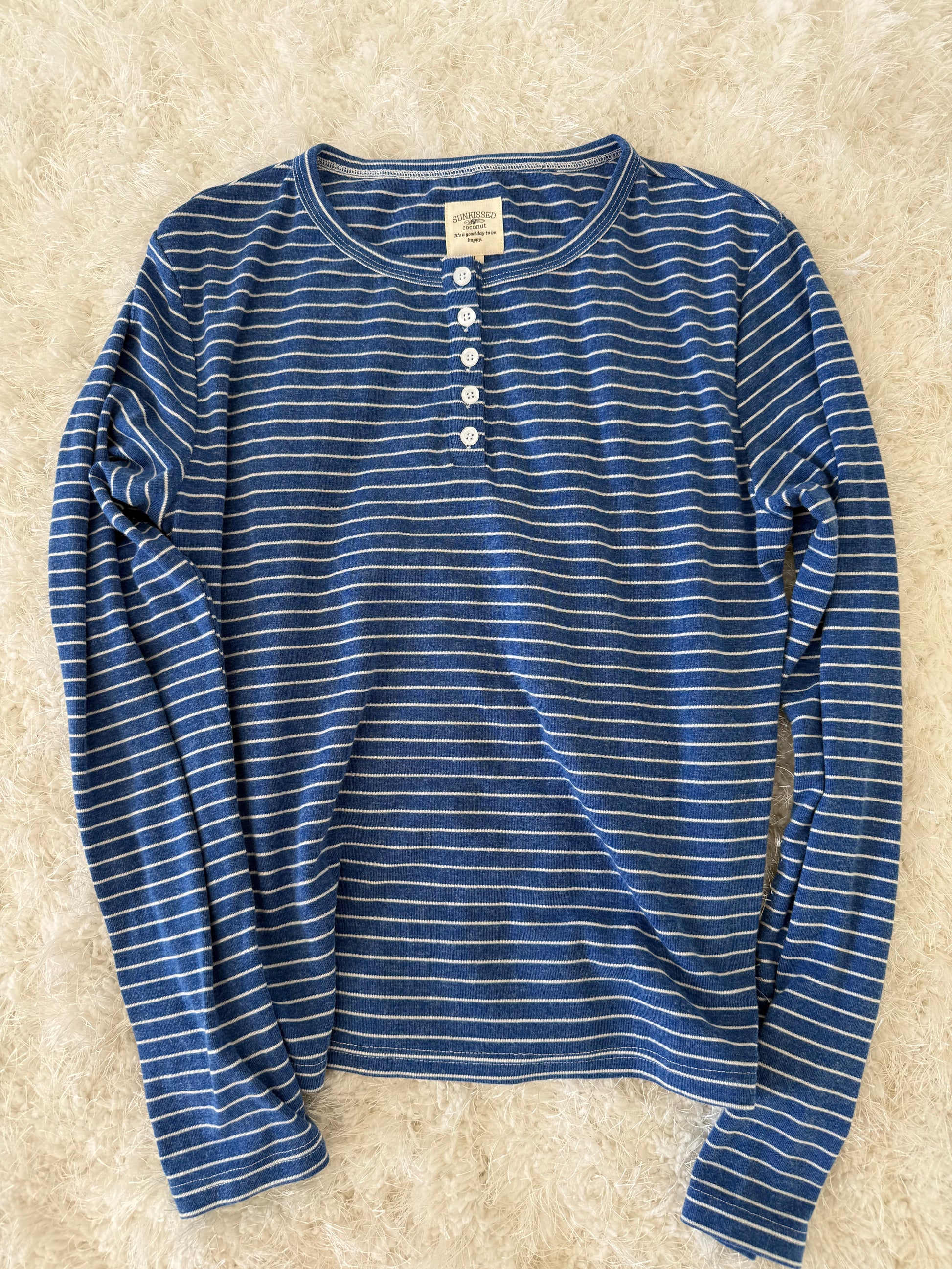 Striped Soft Button Loungewear Long Sleeve Top